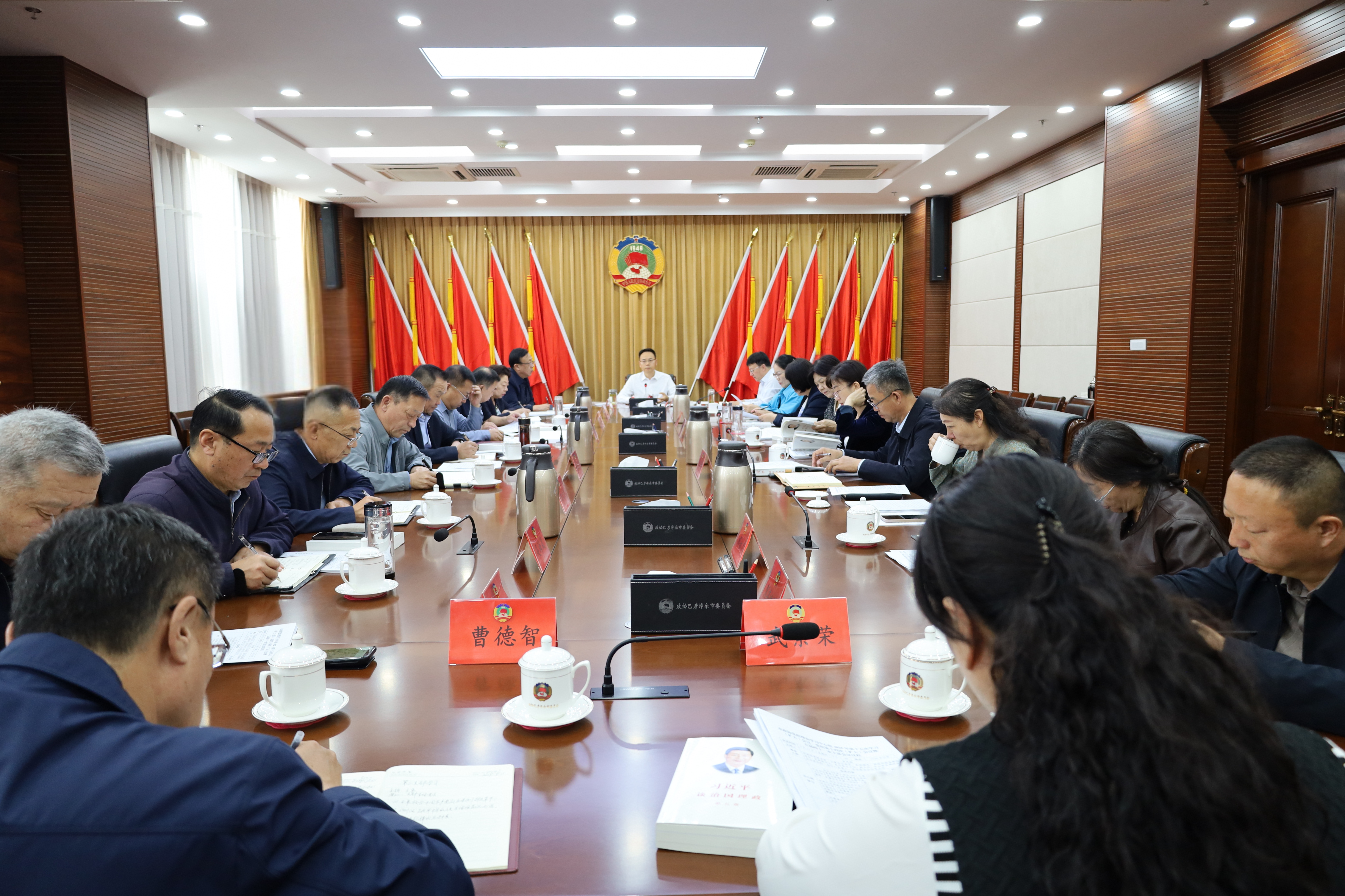 9月25日,市政协党组书记、主席贺连辉主持召开2025年第十四次党组(扩大)会议暨五届四十一次主席会议,市政协党组副书记、副主席苏常亮,副主席张志忠、陈月梅、张秀文,一级巡视员吴青霞,秘书长韩世忠参加会议。