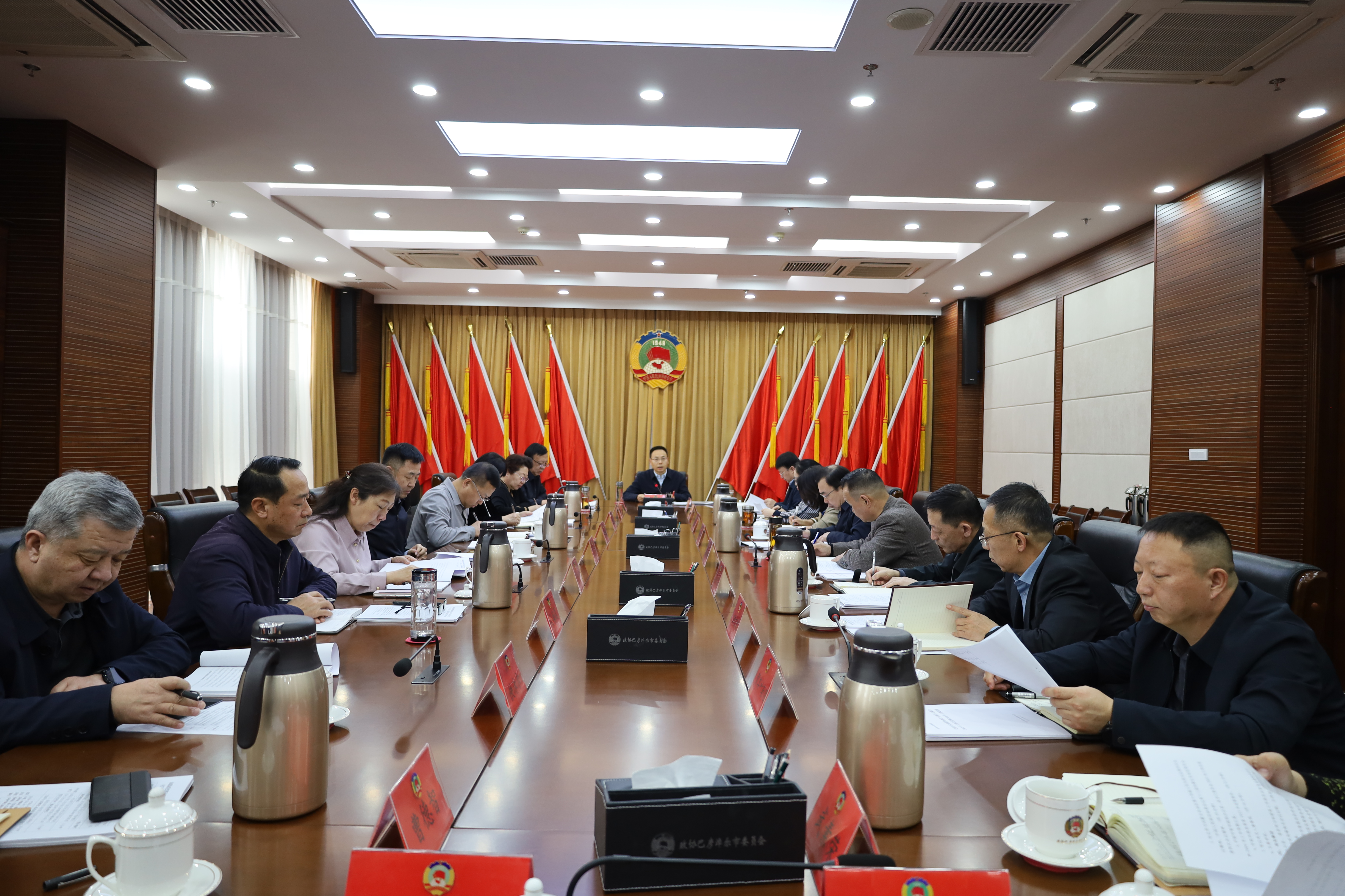 1月29日,市政协党组书记、主席贺连辉主持召开五届四十七次主席会议,市政协党组副书记、副主席苏常亮,副主席张志忠、陈月梅、张秀文、格日乐,秘书长韩世忠出席会议。