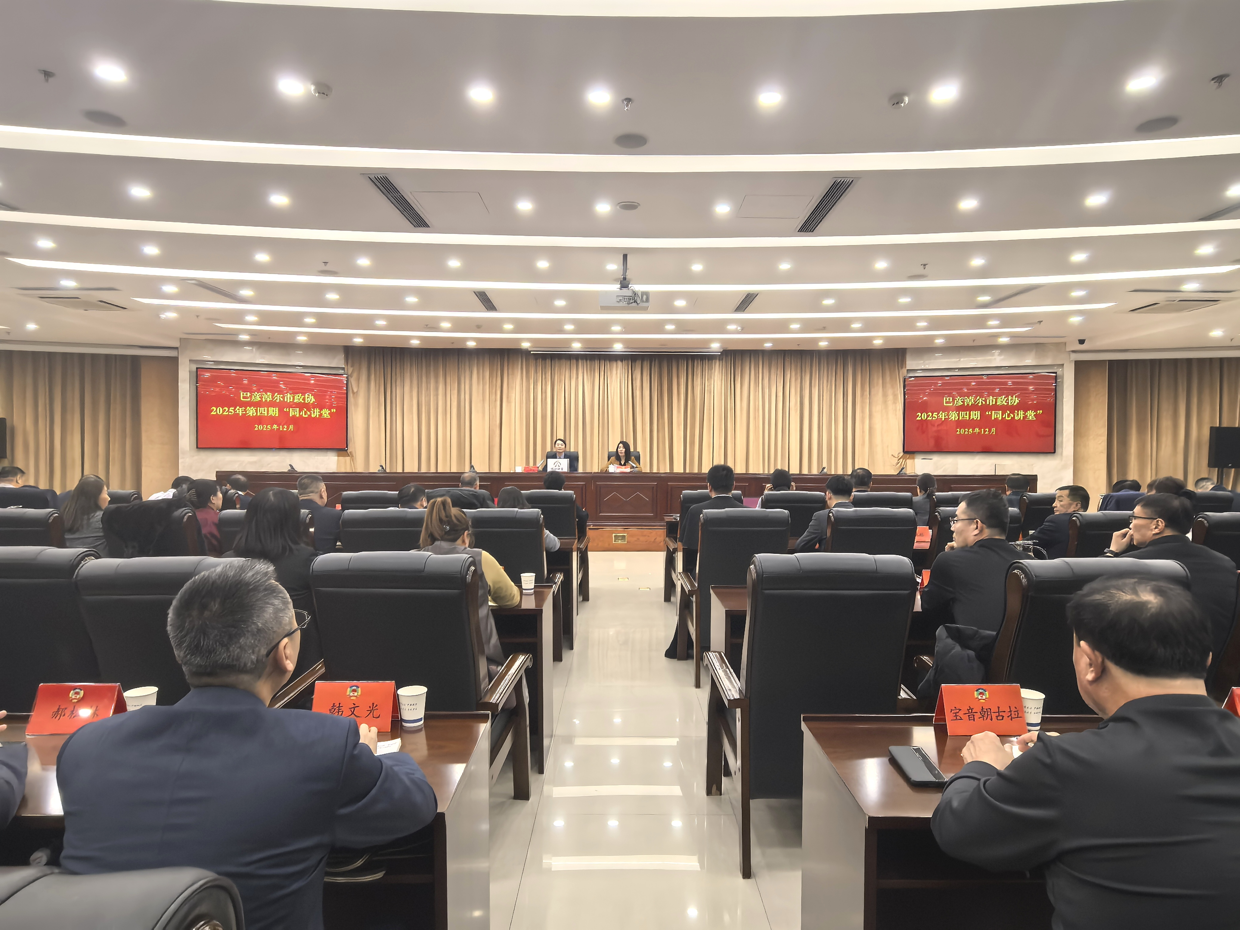 12月17日,市政协举办2025年第四期“同心讲堂”,邀请市委党校副校长、副教授陈海燕作专题辅导讲座。市政协副主席格日乐出席并主持会议。部分住市自治区政协委员、市政协委员和机关干部共100余人参加培训。
